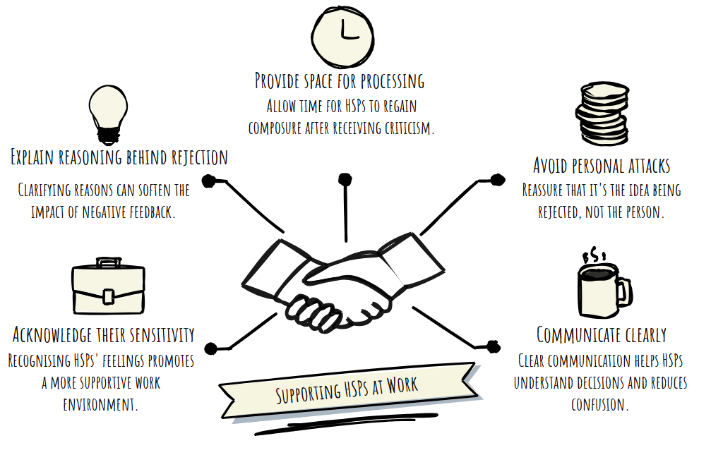 Think carefully about how you deliver feedback. HSPs care deeply about their work. Constructive feedback is absolutely fine; it just needs to be delivered thoughtfully. Balance it with recognition of what is going well, be specific and clear, and give them time to process rather than expecting an immediate response.